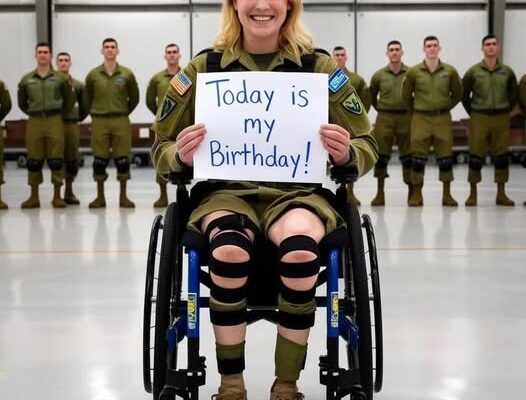 A photograph making the rounds on social media has captured the hearts of people everywhere. In the image, a young woman dressed in military uniform is seen sitting in a wheelchair, holding a sign with a simple but powerful message: “Today is my Birthday!” Behind her, her fellow soldiers stand proudly in formation, showing their support.